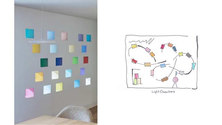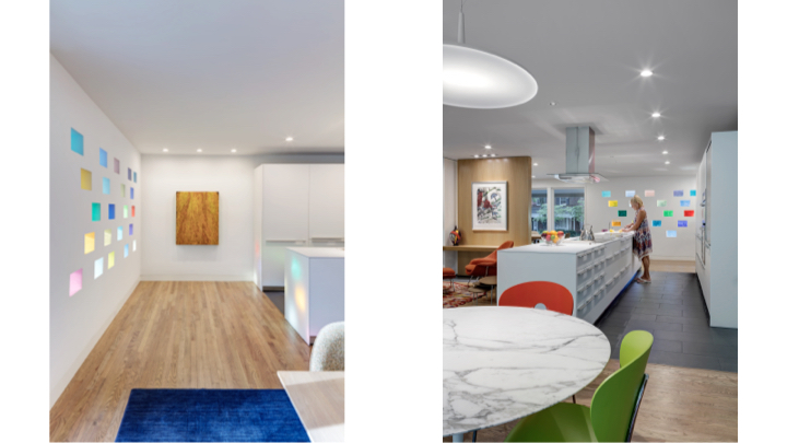 A renovation to Deborah Freed and Pat Higgins house is called 22 Glass Billets. The glass billets are imaged as musical notes set within an invisible stave. Afternoon sunlight releases the color of glass billets embedded in the west wall of the entry porch. These colors move about the rooms, reflecting off surfaces and dancing on the floor until the day comes to an end. And a beautiful joint was made for the afternoon light to enter deep into the house.