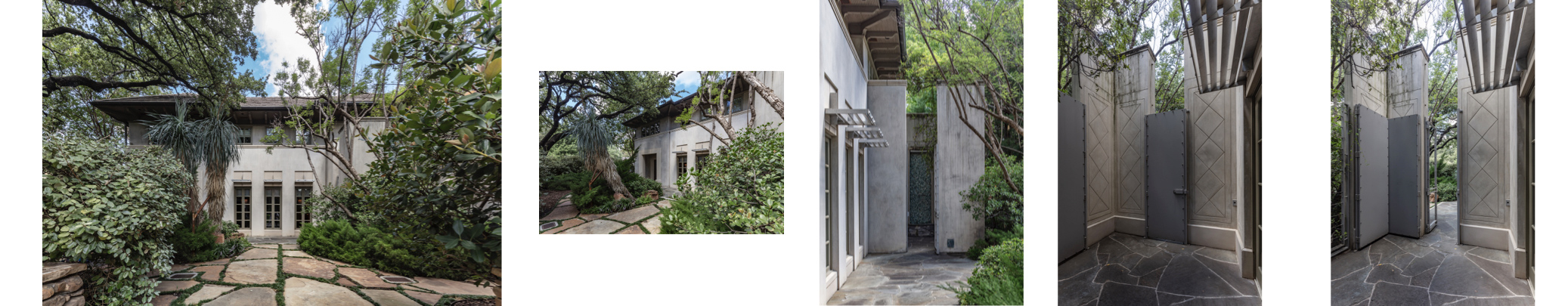 The Williamson Residence was the first house I designed. The entry porch faces south. This was the beginning of porch and courtyard design for my work. Entry into the house is not revealed from the street. Walking towards the porch, the entry is revealed. There is a private courtyard on the east end of the porch. There is the sound of running water within the small courtyard. These are images inside the courtyard. The courtyard can open or close for privacy.